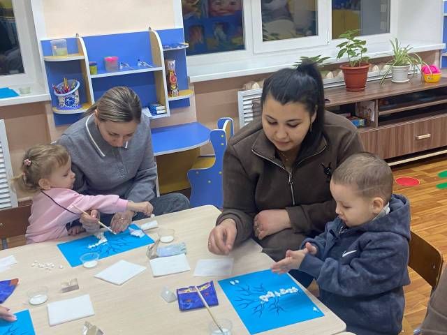В первой младшей группе №1 "Машенька" прошёл мастер-класс с участием родителей по изготовлению аппликации «Деревья зимой!». В ходе мастер-класса взрослые и дети с удовольствием погрузились в процесс создания поделок, что позволило им не только познакомиться с основами аппликации, но и освоить различные техники и приёмы работы с материалами.