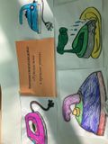 Ну, и как положено на дне рождении, именник получил подарки. Ребята нарисовали отличные утюги, организовав выставку.