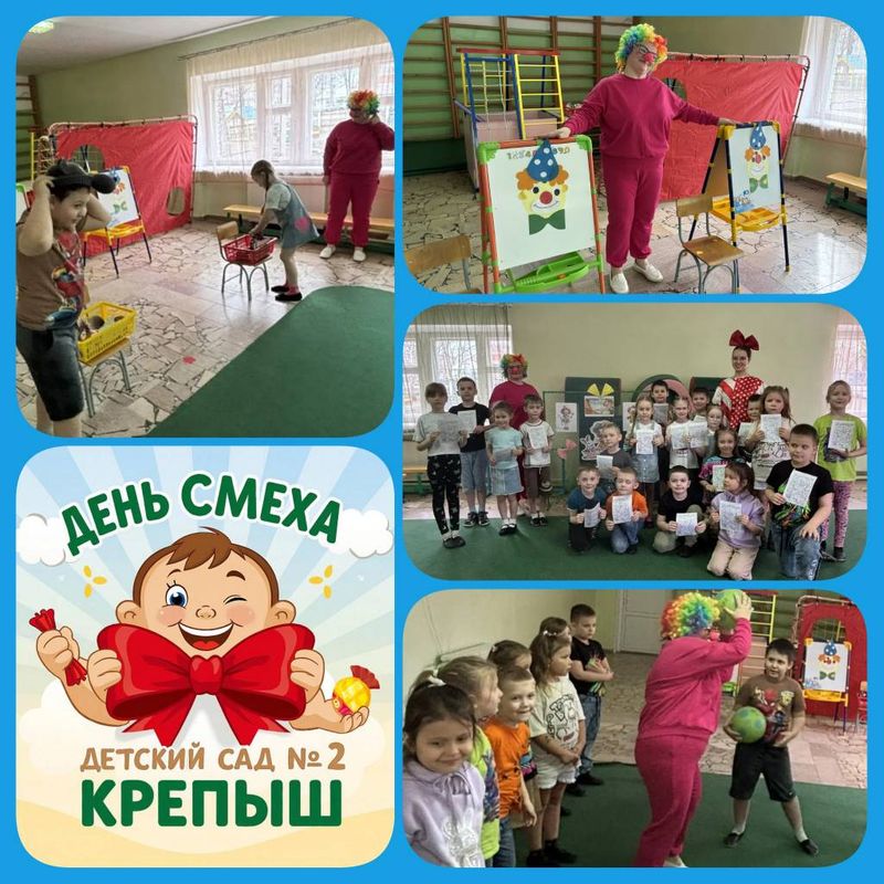 Дети подготовительных групп «Красная Шапочка» и «Карлсон» стали участниками развлечения «День смеха и веселья!». Бурю положительных эмоций доставил детям клоун Клёпа с подружкой клоунессой Фаиной. Вместе с ними они шутили, играли в весёлые игры «Наряжалки», «Создай образ клоуна», отгадывали загадки-обманки, участвовали в весёлых стишках на внимание, танцевали. По завершению праздника, Фаина подарила детям раскраски с изображением весёлых клоунов.